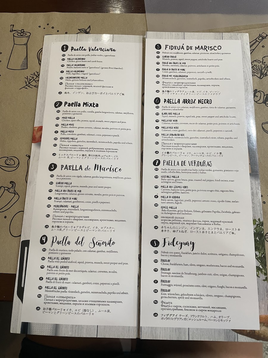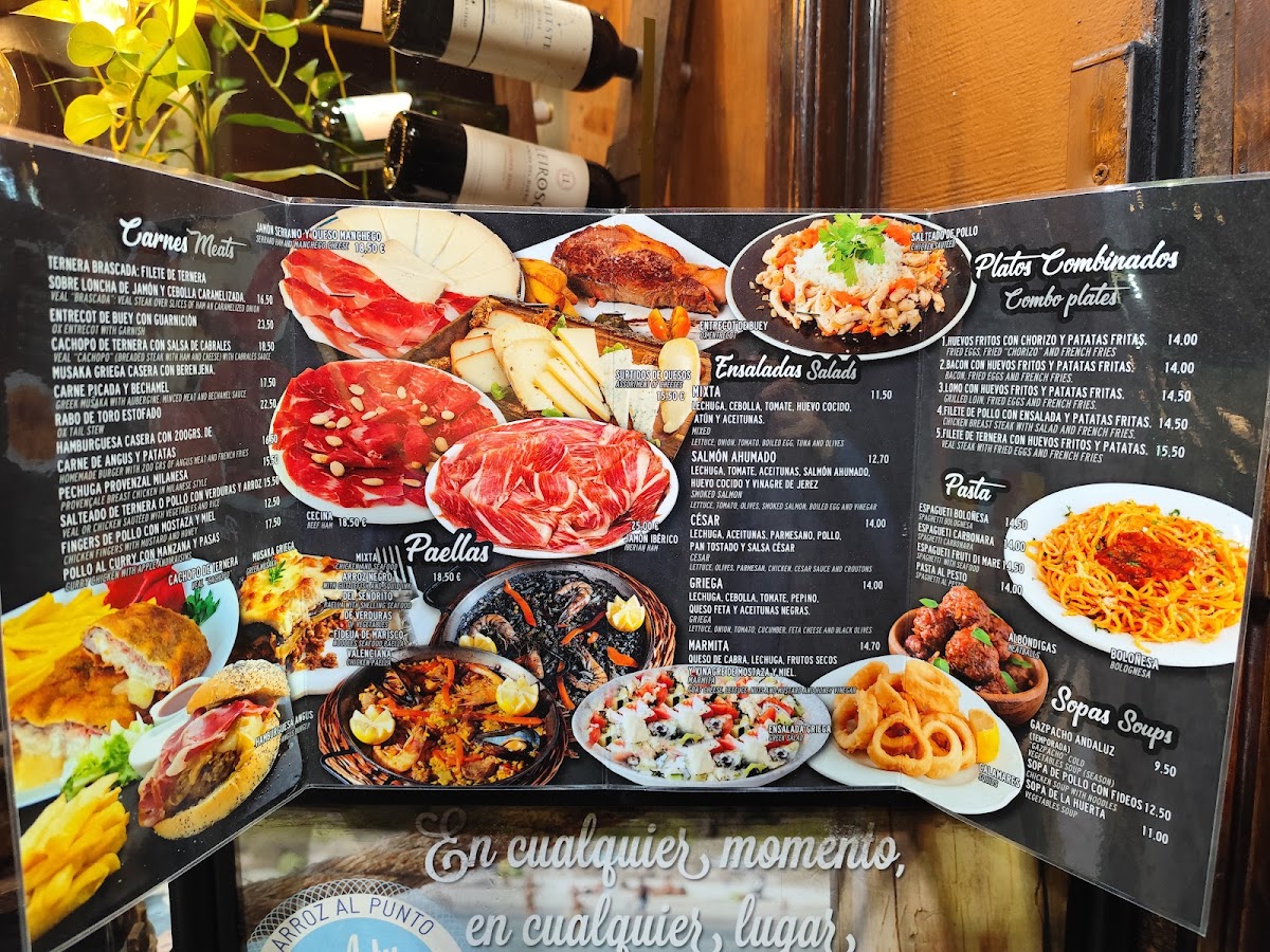 The menu is structured to accommodate various dining situations, from casual meals to more substantial lunch or dinner options. Some dishes, such as the paellas, are prepared to order and may require additional wait time. Overall, the menu supports a range of preferences with emphasis on authentic Spanish cuisine and beverages.